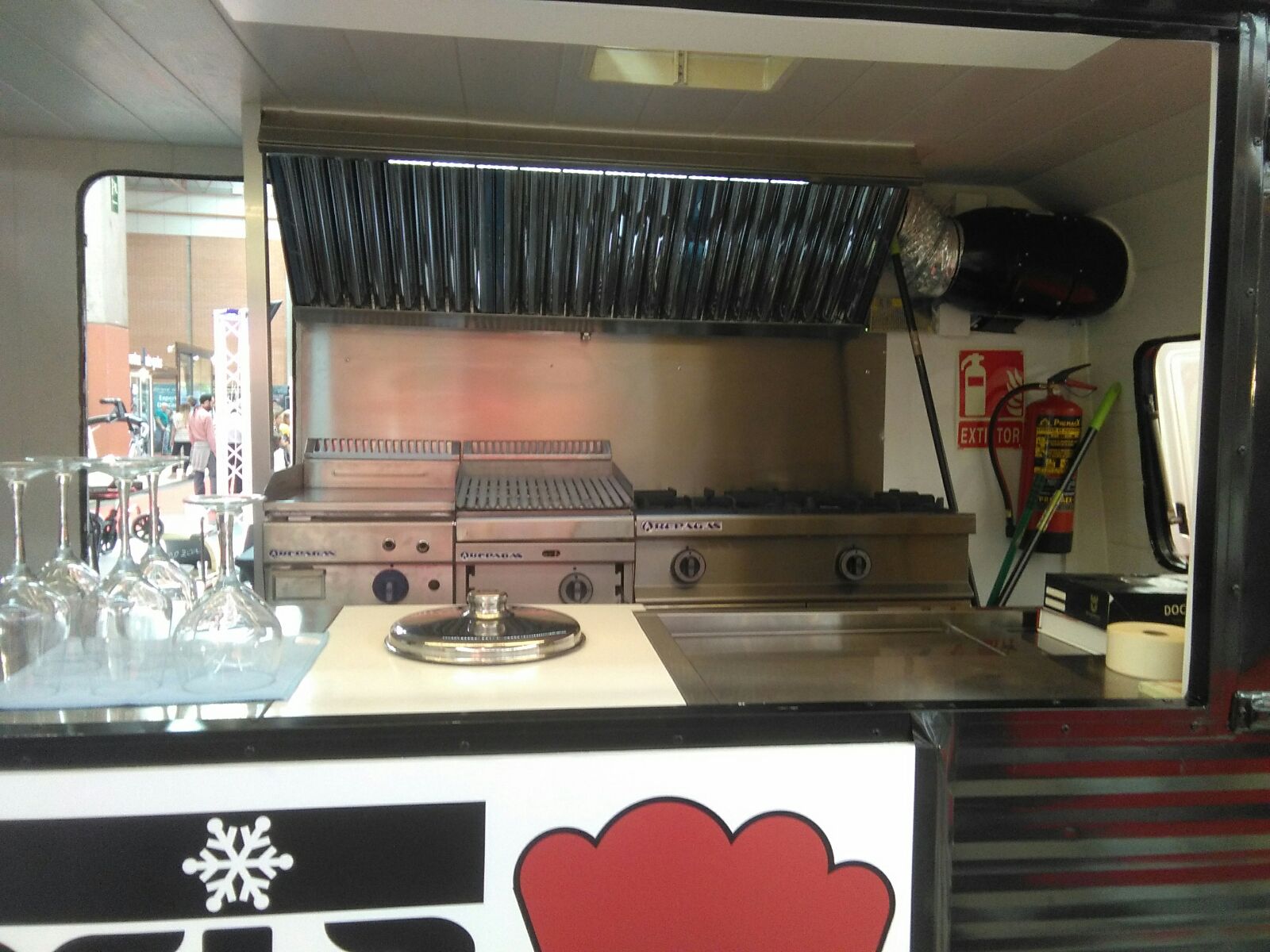 The storage and extraction areas are essential in the kitchen of a food truck. We recommend that you have the extraction hood made to measure so that it has reduced dimensions and power, as well as incorporating a fan. Furthermore, it is a good idea to use any space that will enable you to store your utensils in a perfectly organised way.