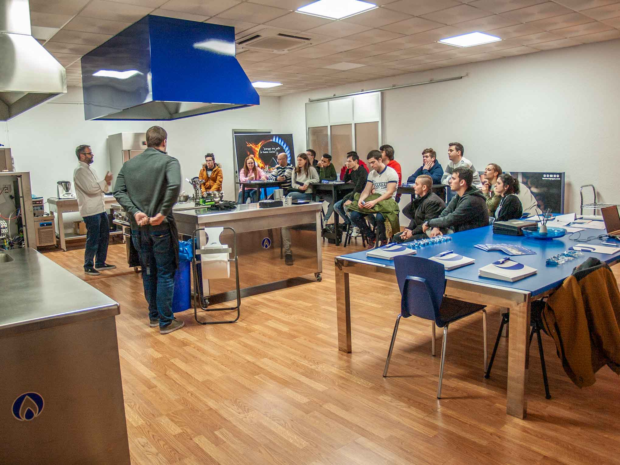 Para finalizar, los alumnos reciben una masterclass participativa con nuestro chef corporativo, Pablo Martínez, dividida en dos sesiones: una primera parte teórica donde se les muestra en profundidad el funcionamiento de las máquinas y sus aplicaciones gastronómicas y una segunda parte práctica donde los alumnos realizan diferentes elaboraciones.