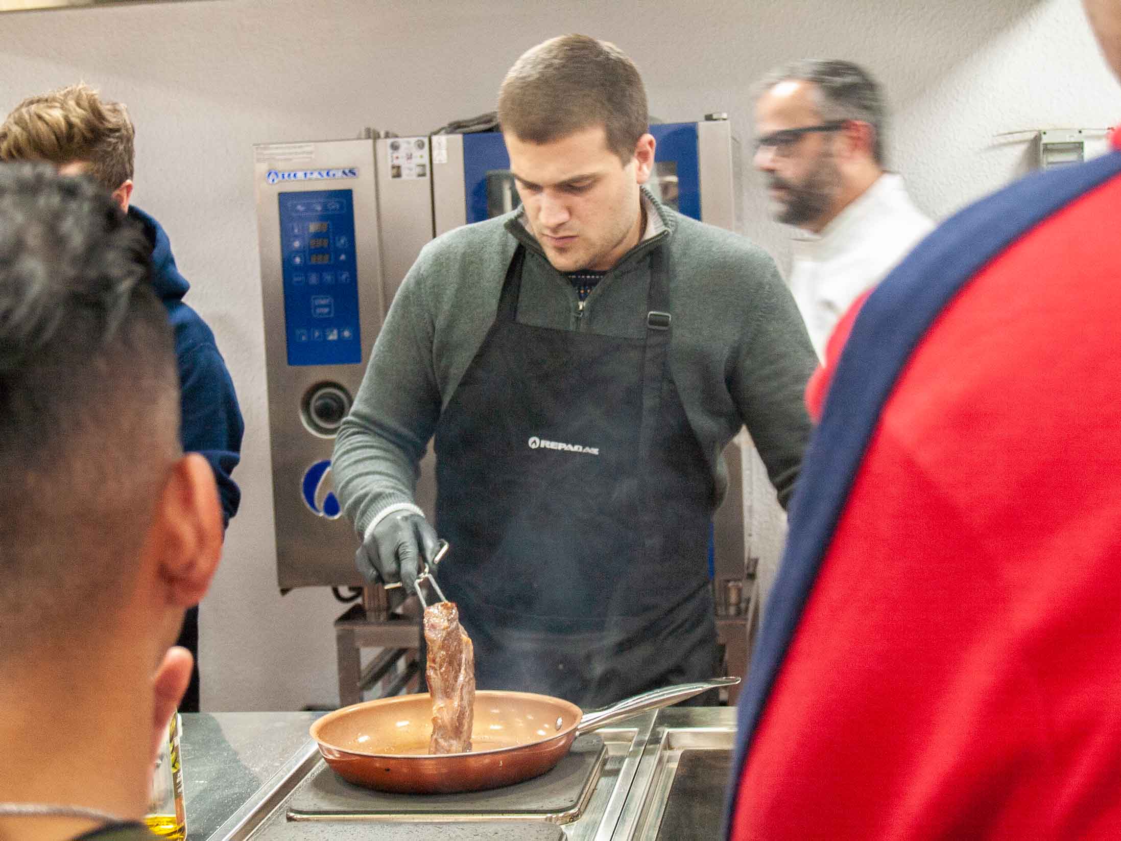 Estudiantes de la Escuela Superior de Hostelería y Turismo de Madrid visitaron nuestra planta en Humanes, conocieron el proceso de fabricación de sus productos y pusieron en práctica sus conocimientos con una clase magistral con su chef corporativo, Pablo Martínez.