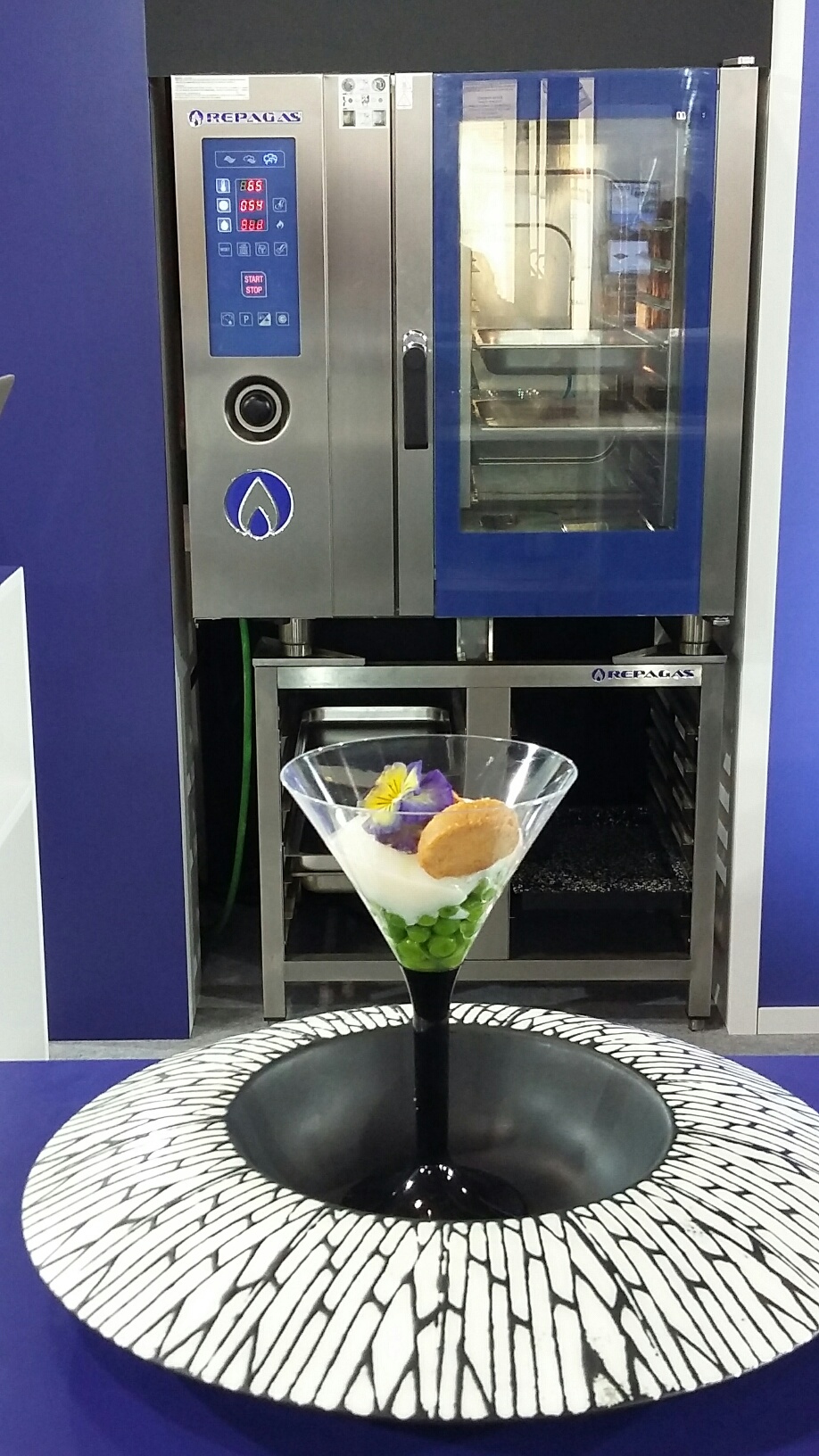 En estas demostraciones nuestros clientes y visitantes tuvieron la oportunidad de conocer las utilidades del Horno Combinado HE-1011/2. Pablo ha elaborado recetas como Huevo a baja temperatura con guisantes envasados al vacío y tierra de jamón, con las que se dio a conocer las posibilidades que ofrece este tipo de Cocina Planificada.